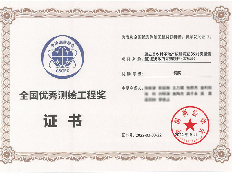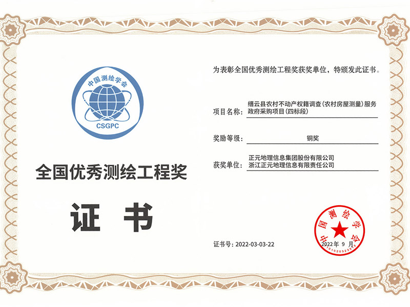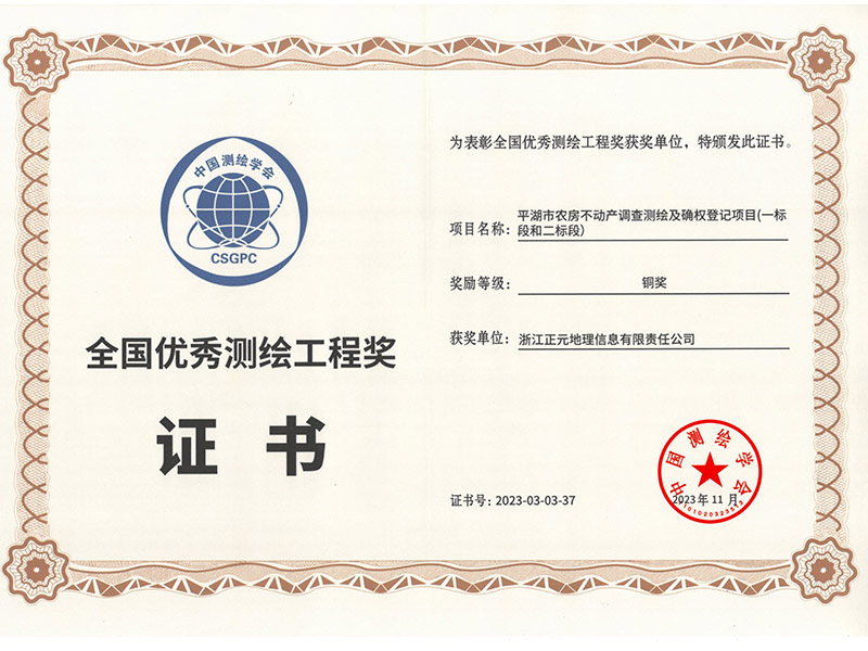 平湖市农房不动产调查测绘及确权登记项目铜奖